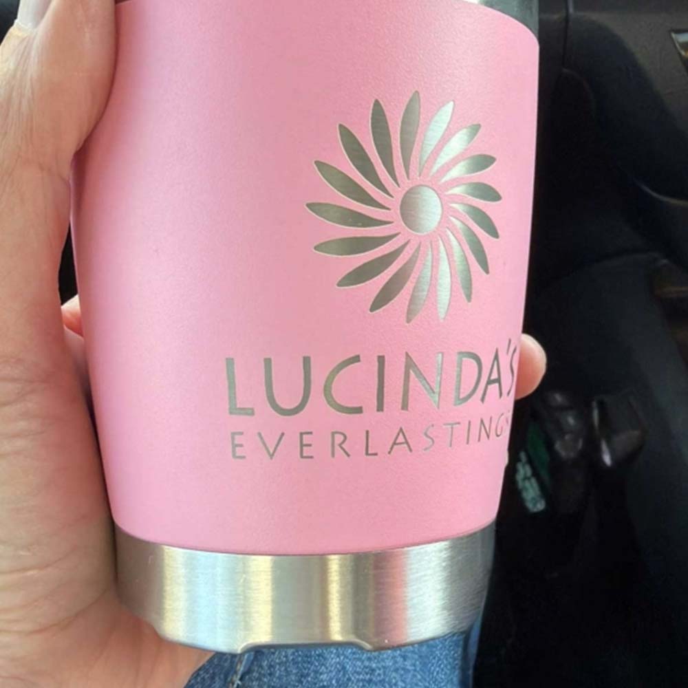A simple, sturdy little cup with Lucinda’s Everlastings engraved on it — made for busy days, coffee lovers, and anyone who likes things that just work.